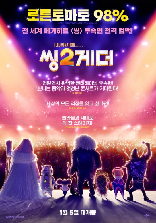 ‘씽 2’는 단순히 음악으로 꾸며진 즐거운 애니메이션이 아닙니다. 이 작품은 ‘진정한 무대는 마음속에 있다’는 메시지를 전달해 줍니다. 버스터 문과 친구들은 거대한 무대에서 공연을 펼치지만 결국 진짜 승리는 관객의 환호가 아니라 스스로를 이겨낸 용기에서 비롯된다는 겁니다. 영화의 결말은 화려한 불꽃놀이보다 더 따뜻한 감정으로 마무리됩니다. 클레이 캘러웨이가 다시 기타를 들고 무대에 오르는 순간 그와 함께한 모든 캐릭터들은 눈부신 조명을 받습니다. 이 장면은 단순한 공연이 아니라 상처를 딛고 다시 일어서는 인간의 모습을 상징합니다. ‘씽 2게더’는 관객에게 묻는 거 같습니다. “당신의 무대는 어디에 있습니까?” 그 질문은 단지 예술가에게만 해당되는 것이 아니라, 자신의 삶 속에서 열정을 잃지 않으려는 모든 사람에게 닿습니다. 꿈을 향해 나아가는 과정은 언제나 두렵지만, 그 두려움을 인정하는 순간 진짜 용기가 생긴다는 사실을 영화는 조용히 알려줍니다. 픽사의 감동과는 또 다른 일루미네이션만의 경쾌한 리듬, 그리고 희망의 에너지는 이 영화를 더욱 빛나게 합니다. ‘씽 2’는 세대를 초월한 가족 애니메이션으로서, 누구에게나 “다시 도전해도 괜찮다”는 메시지를 전달해 줍니다. 관객은 웃고, 울고, 노래하며 영화가 끝난 후에도 마음속에서 그 멜로디를 오래도록 되새기게 되니 말입니다. 결국 ‘씽 2게더’는 음악이 가진 힘, 그리고 도전이 주는 기쁨을 가장 아름답게 시각화한 작품입니다. 무대 위에서 노래하는 캐릭터들의 모습은 우리 모두의 내면에 잠들어 있던 꿈을 깨우며, 인생이라는 무대 위에서도 언제든 다시 빛날 수 있다는 희망을 전해주는 영화라고 생각합니다.